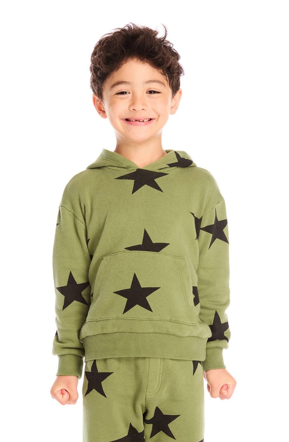 He'll stay cozy and stylish in the Allover Stars Hoodie, crafted from soft green fabric with a fun 90s-inspired star motif.