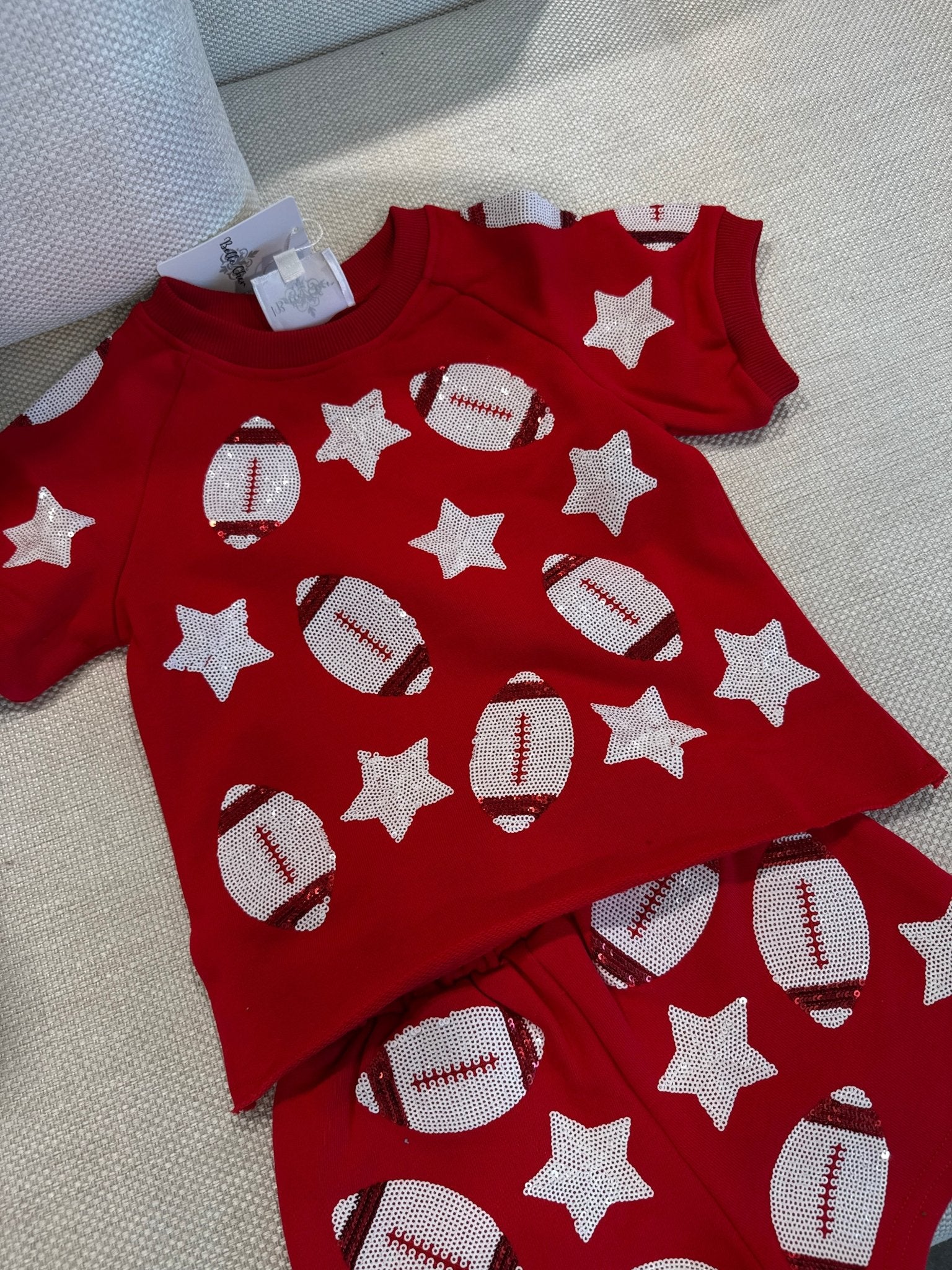 The Belle Cher Football Top for kids combines sporty style with comfortable wearability. Designed with quality materials, it offers durability and ease of movement, making it ideal for active play. Its classic football-inspired design adds a trendy touch to any child's wardrobe, ensuring both functionality and fashion in one versatile piece.