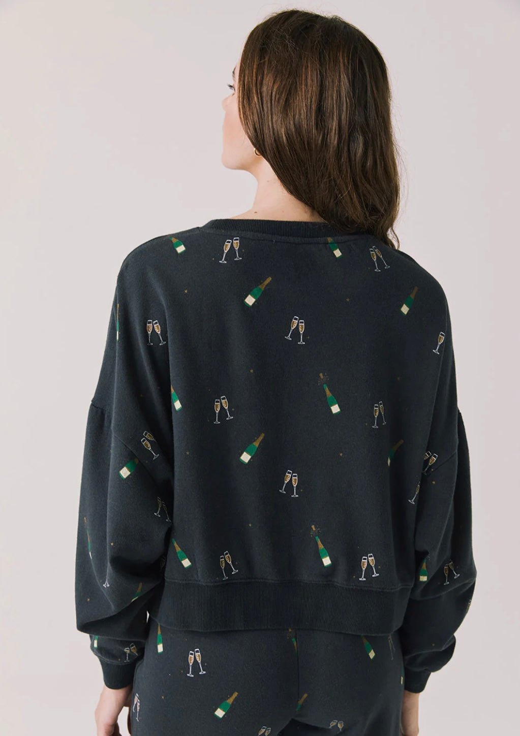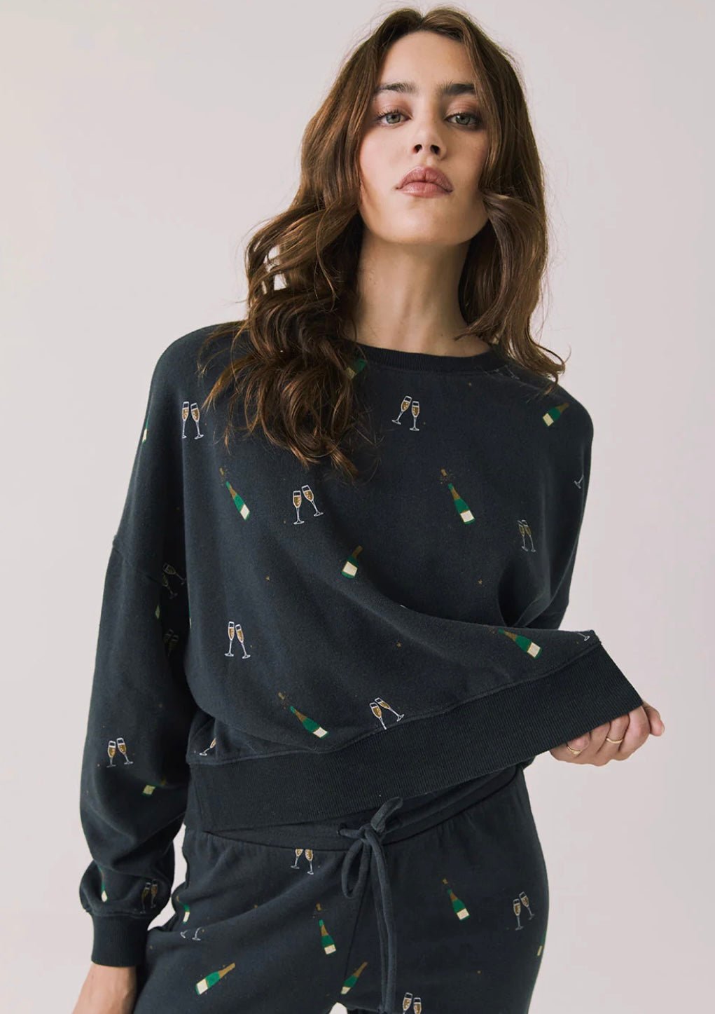 The Champagne Party Long Sleeve features a refined cropped fit with a high neckline and long sleeves for an elevated lounge look.