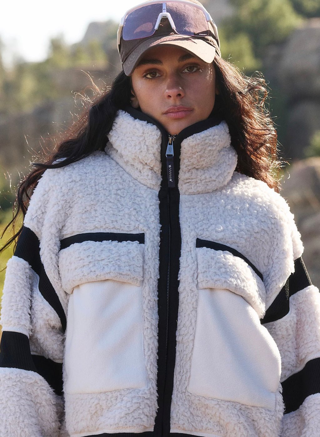 Cozy and cool-temps ready in this funnel neck fleece, crafted in a full-zip silhouette with high-pile fleece fabrication and contrast hue detailing for an eye-catching look on and off the mountain.