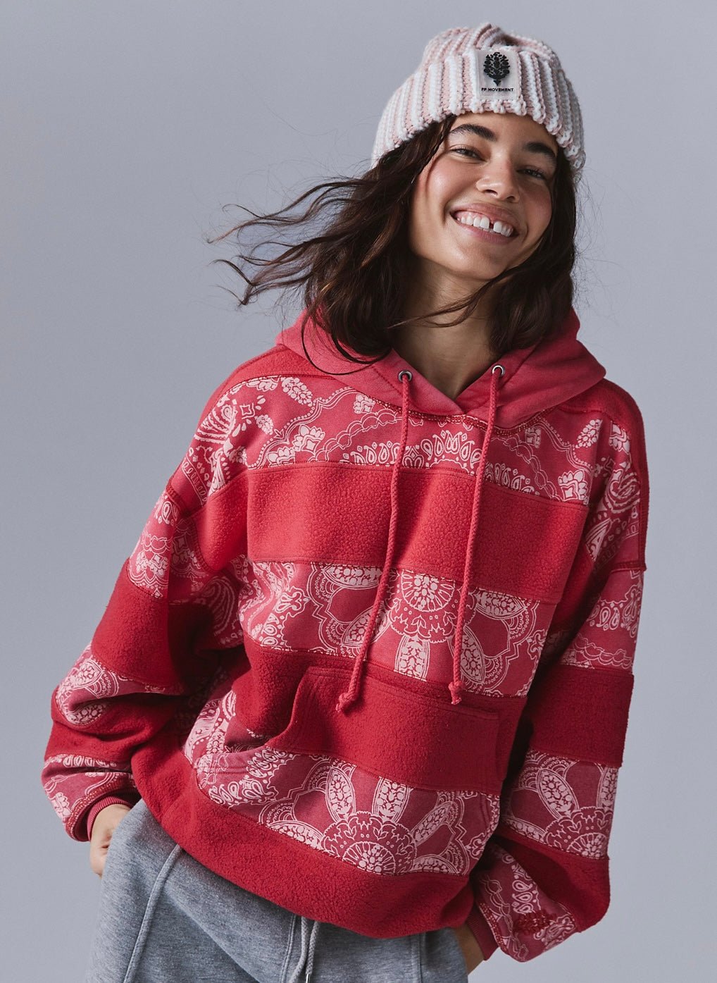 Add the coolest touch to your activewear layer collection with this effortlessly essential bandana-inspired printed hoodie featured in a slouchy, relaxed fit with defined seaming, slightly exaggerated sleeves, and dropped shoulders for added shape.