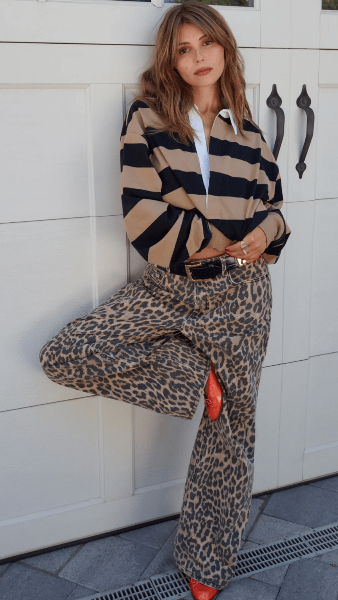 These Good Ease Leopard Jeans combine classic American denim craftsmanship with a bold leopard print for a stylish statement. Designed for comfort and durability, they offer a relaxed fit that moves with you throughout the day. Perfect for adding a touch of effortless edge to your wardrobe, these jeans blend fashion with practicality without compromising on ease or quality.