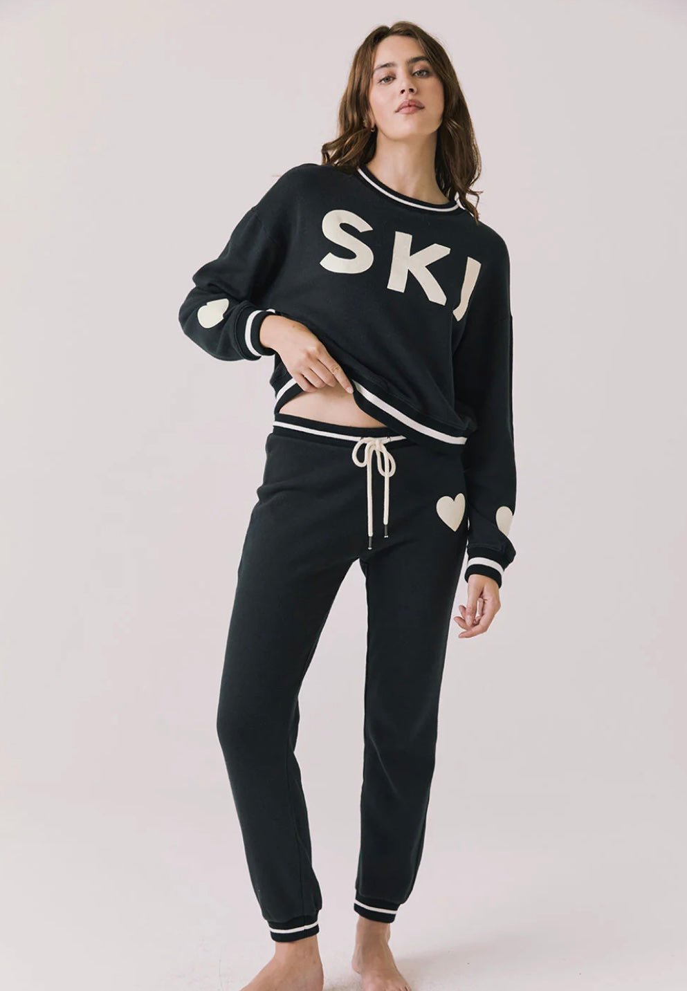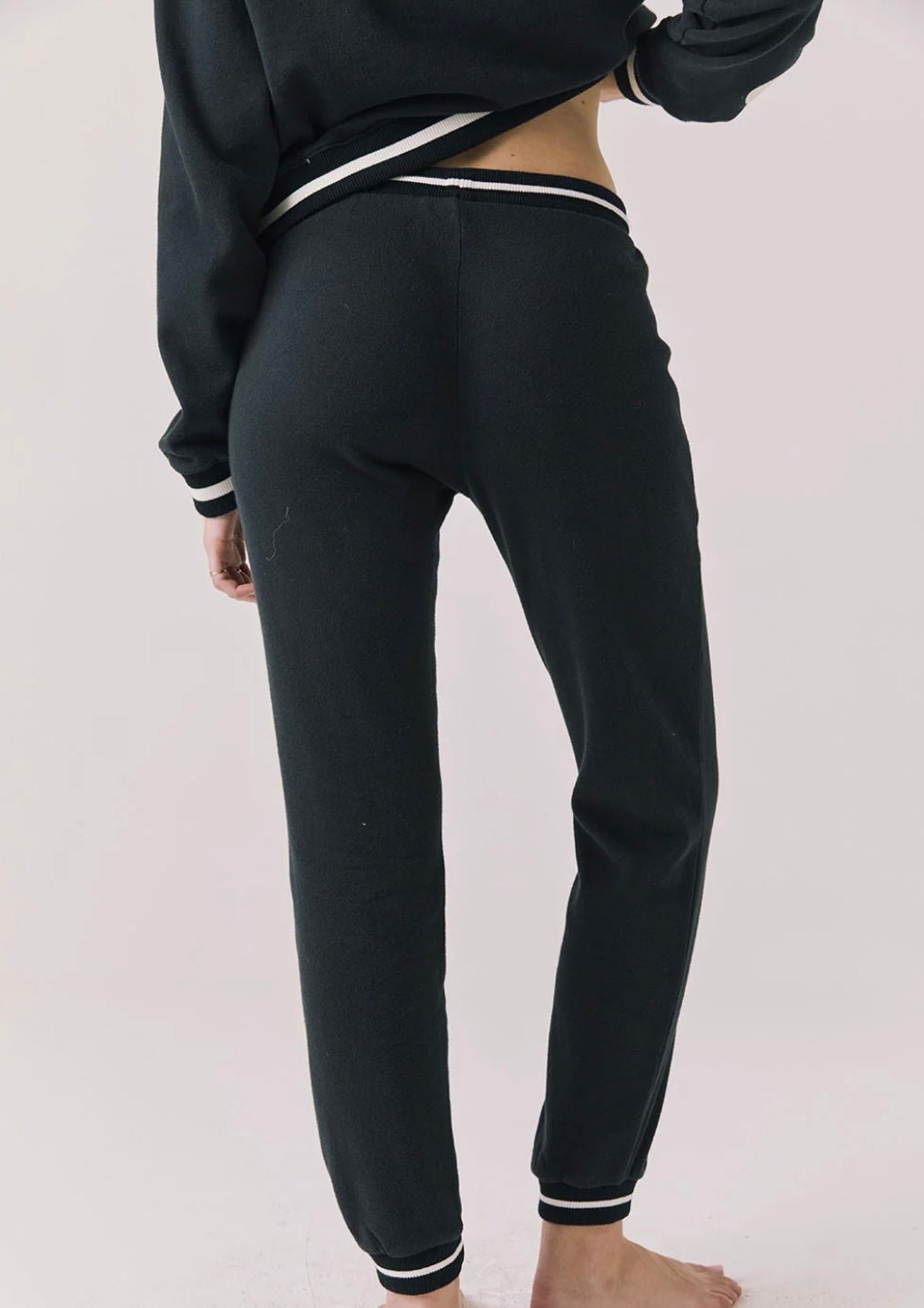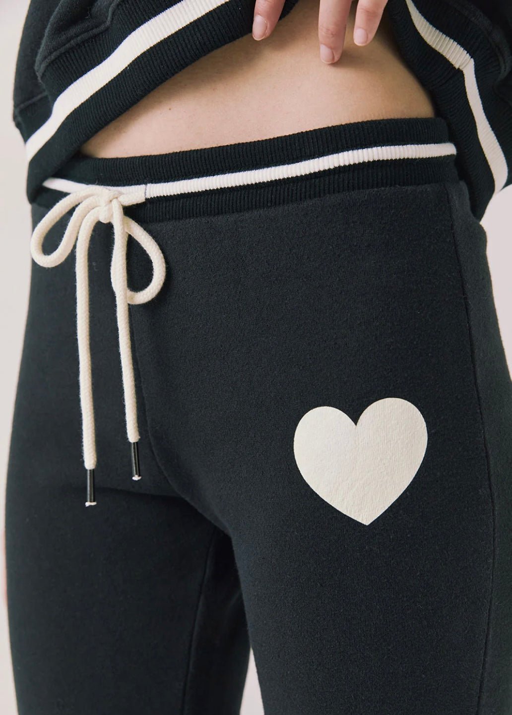 The Heart True Black Joggers embody vintage cool with a 70s chic slope style, featuring sporty stripe accents on the waistline and cuffs.