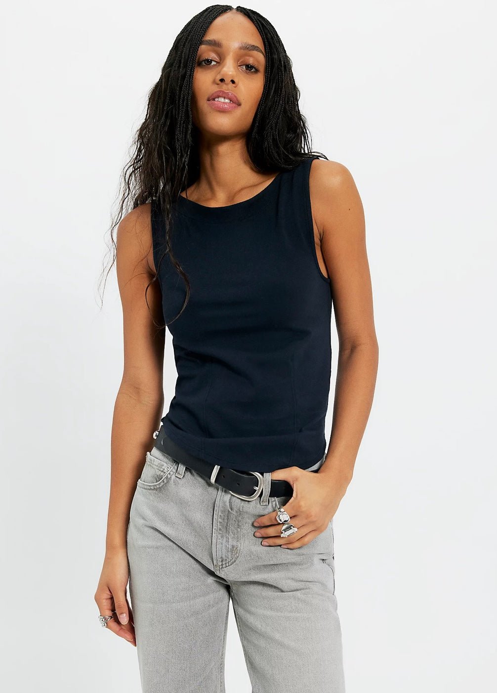 Effortlessly essential, this flattering tank from our We The Freecollection features a fitted silhouette, a soft cotton-blend fabrication, and a classic boat neckline. Style solo or layer under a button-up for a timeless design.