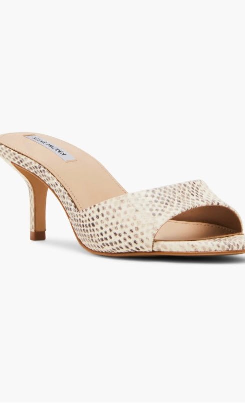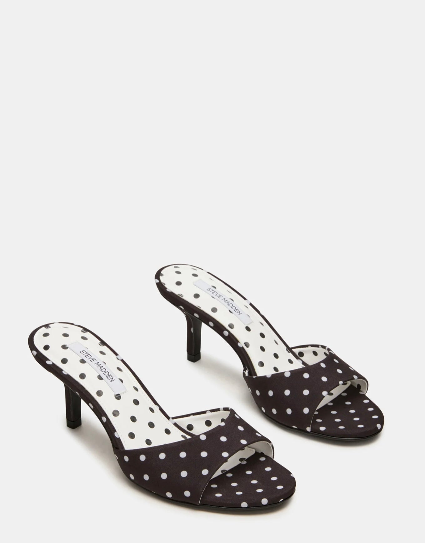 Crafted from luxurious materials, the KENDRIX BLACK/WHITE POLKA DOT muleheel features a rounded-toe design for added comfort and elegance. Perfect for any occasion, these heels effortlessly elevate any outfit with a touch of sophistication.