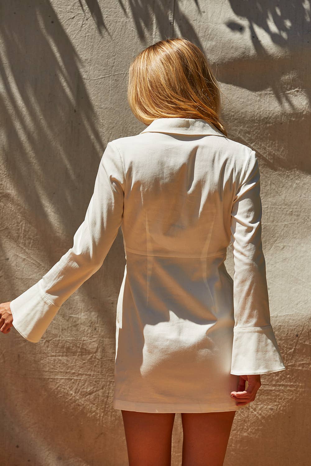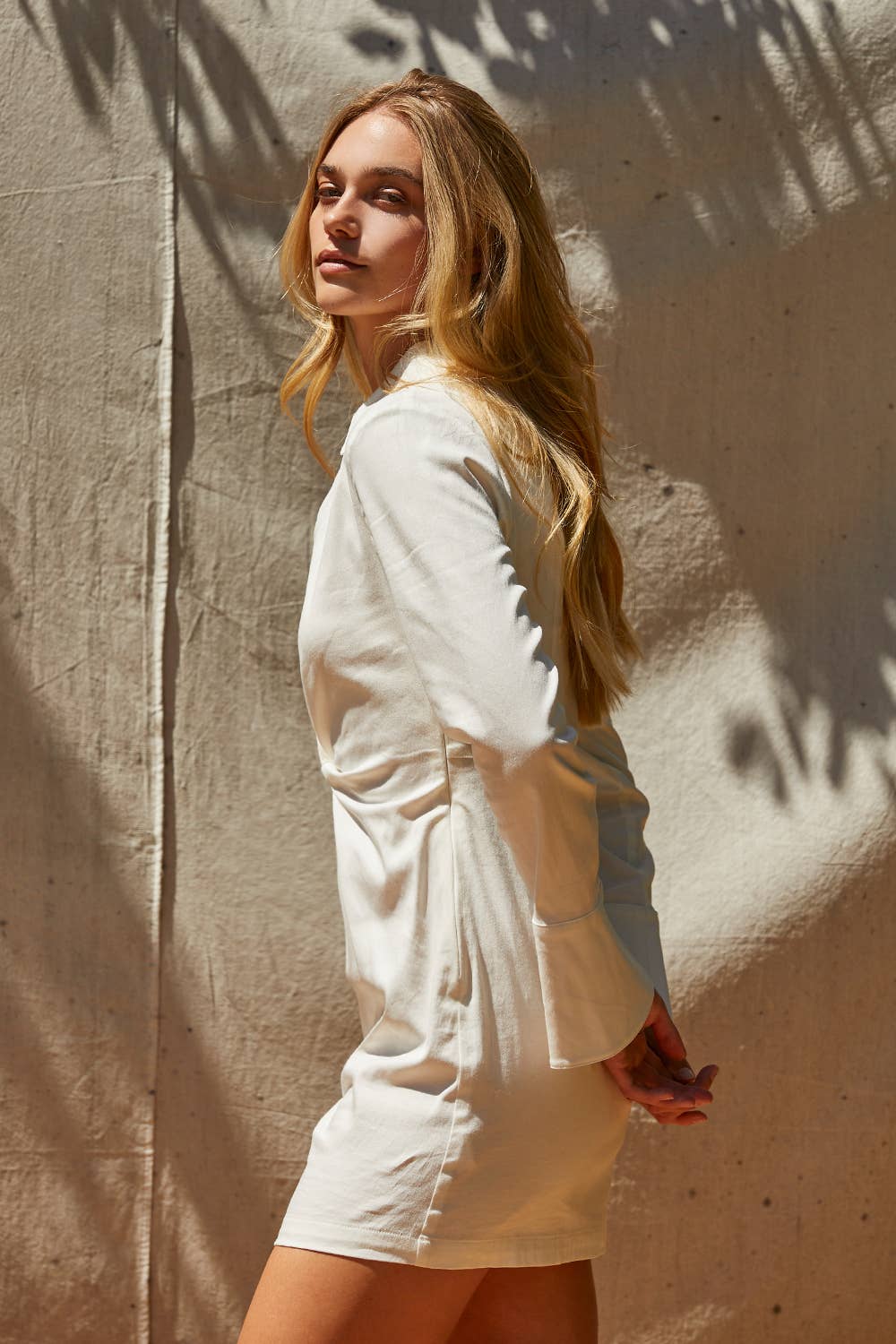 Looking for the perfect summer dress? Look no further than the Kerry Front Twist Mini Dress! This white dress features a twist design that adds a stylish touch to your outfit. Stay cool and comfortable while looking effortlessly chic in this must-have dress.