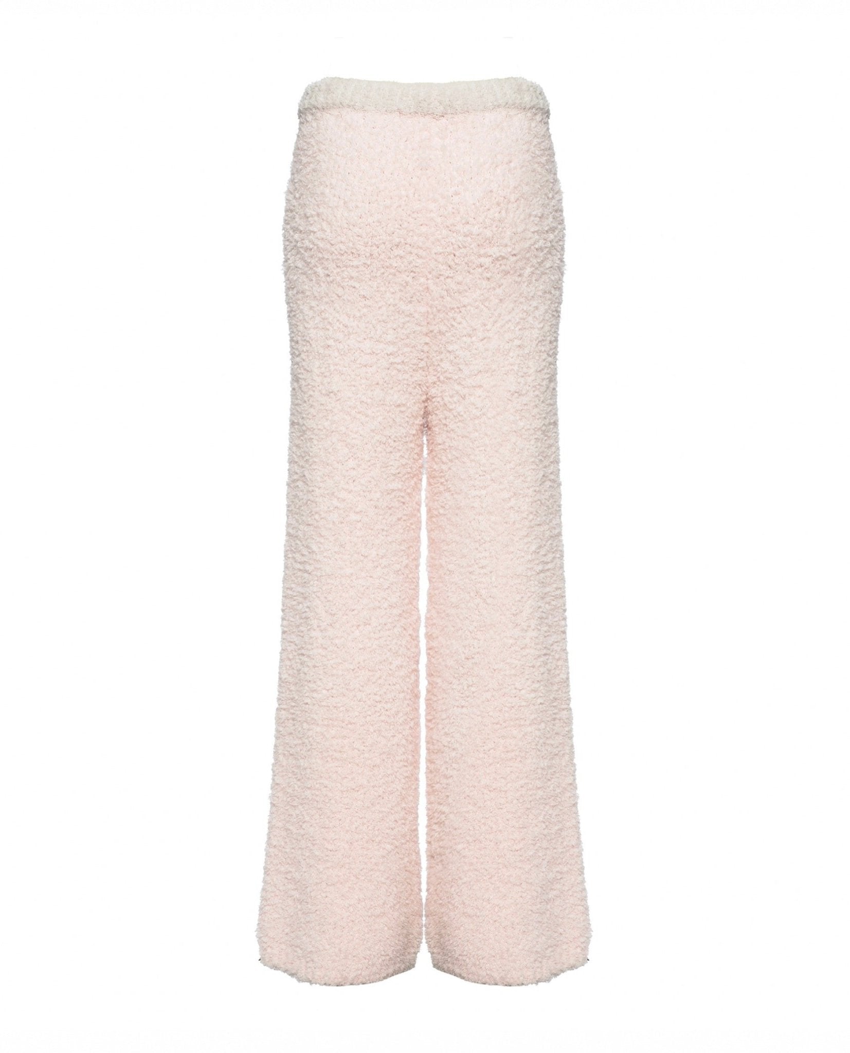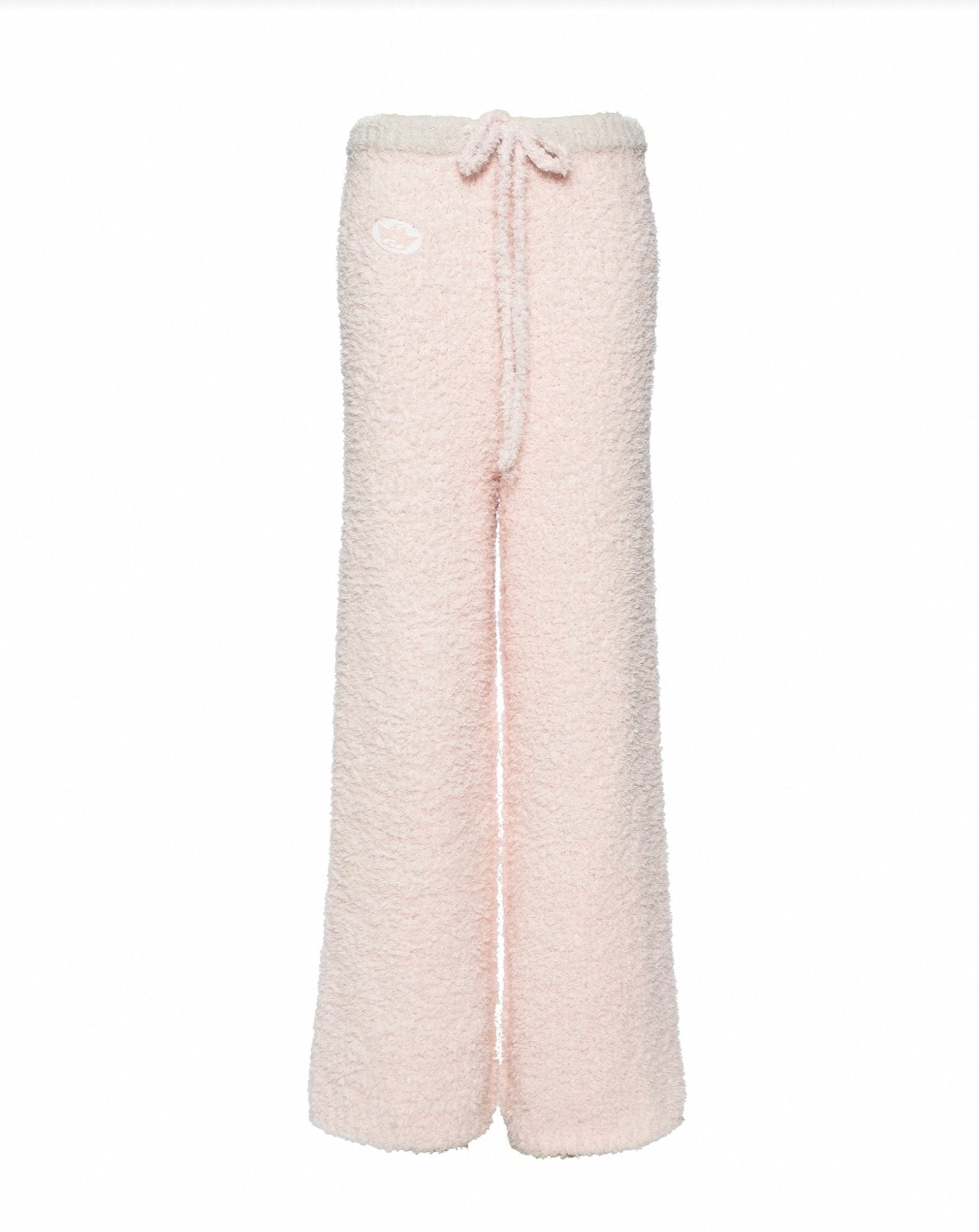 These wide-leg pants are crafted from a soft, plush material in two tones of light blue, offering a calm and cozy feel. A small light blue patch on the front adds a subtle accent to the relaxed, effortlessly stylish silhouette.