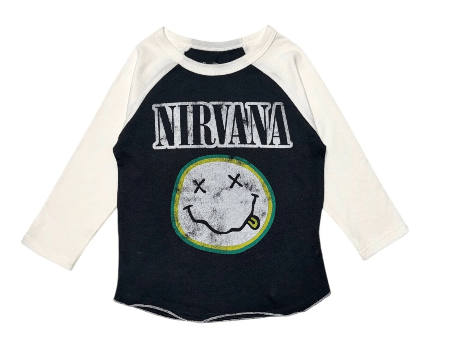 Introducing the NIRVANA SMILEY RAGLAN TEE from ROWDY SPROUTS, a stylish and comfortable addition to your wardrobe. Crafted with high-quality materials, this tee features a unique design that combines classic raglan styling with a vibrant smiley graphic, perfect for any casual occasion.