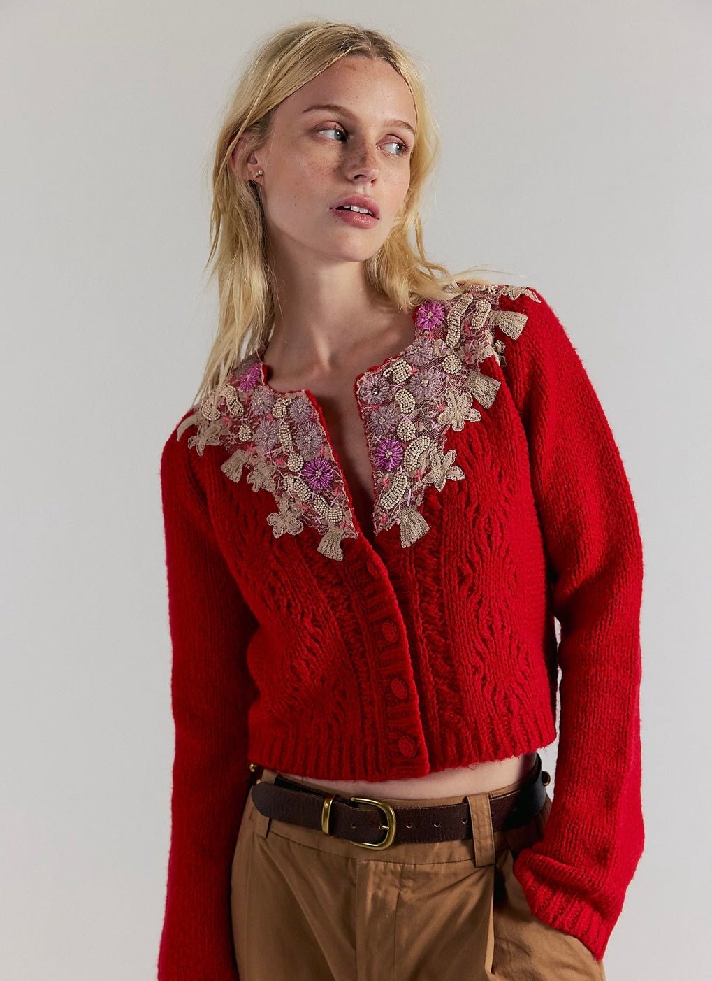 Dreamy and effortlessly classic, this cozy cardi from our FP One collection features a timeless silhouette, soft wool-blend knit, and charming embroidery for an elevated touch.