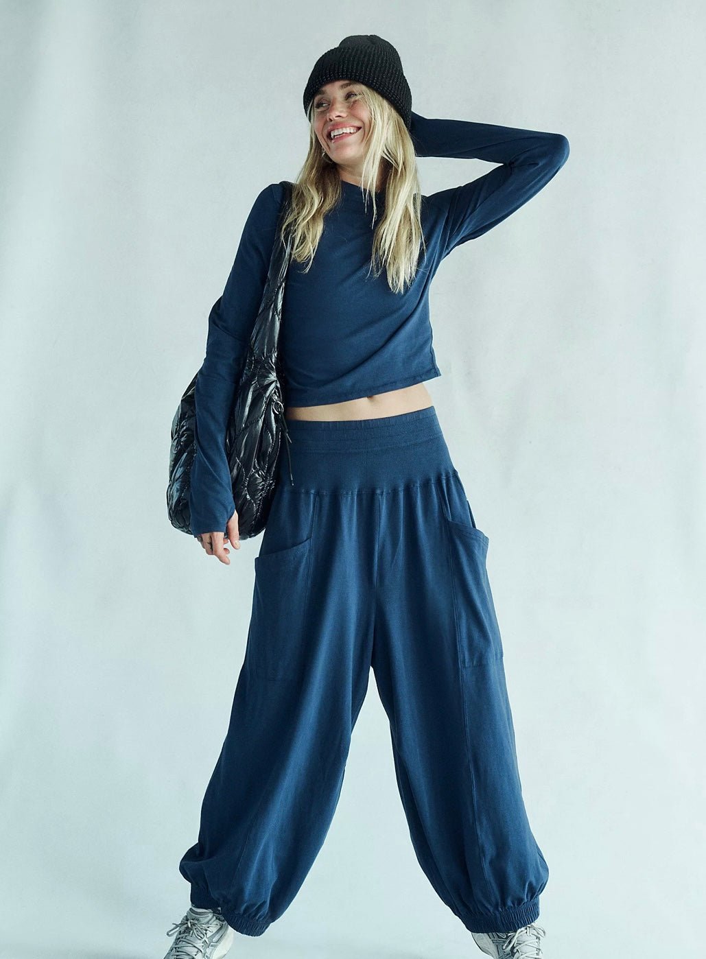 Take your effortless outfitting up a notch with this so cool set featuring a cropped, long sleeve top and coordinating harem-style pants for the easiest done-in-one look no matter the occasion.