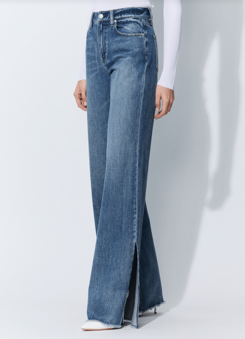 Get ready to elevate your style with our WEEZY FULL LENGTH JEAN. These classy jeans feature a unique cut at the bottom, perfect for adding a touch of sophistication to your outfit. The darker denim wash adds to the overall elegance, making these jeans a must-have for any fashion-forward individual.
